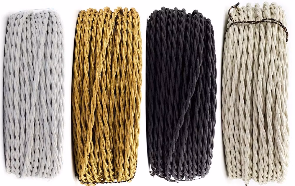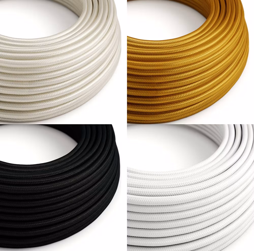 Du kan även välja typ av textilkabel, slät eller tvinnad i svart, vit, benvit eller mässingsfärg. Önskar du annan färg kan vi säkert ordna det också. Ring eller mejla så diskuterar vi.