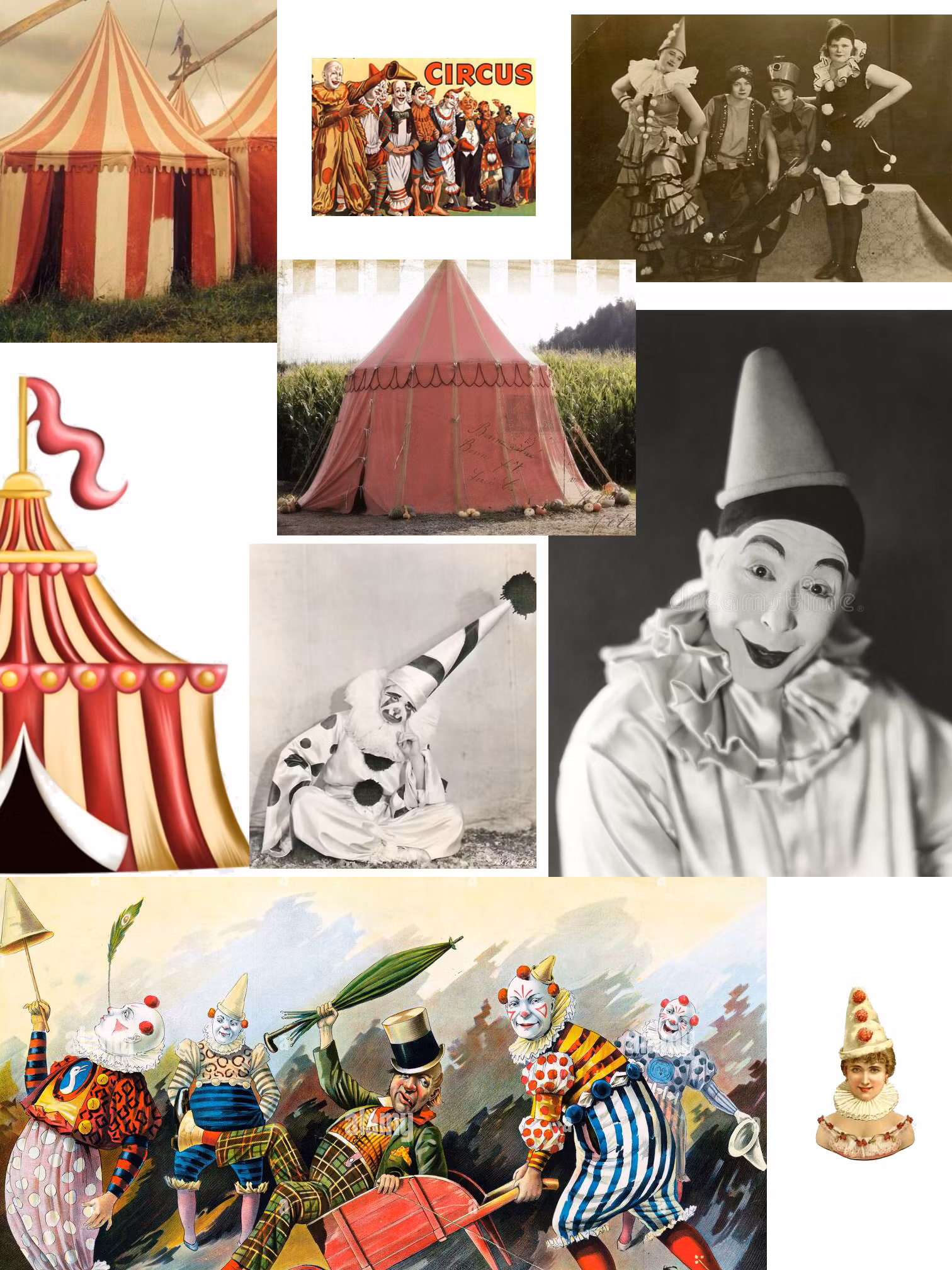 Inspirerad av en av Adolf Loos lampor från 1914 och gamla tiders cirkusar och clowner med vitpudrade ansikten och toppiga hattar.
