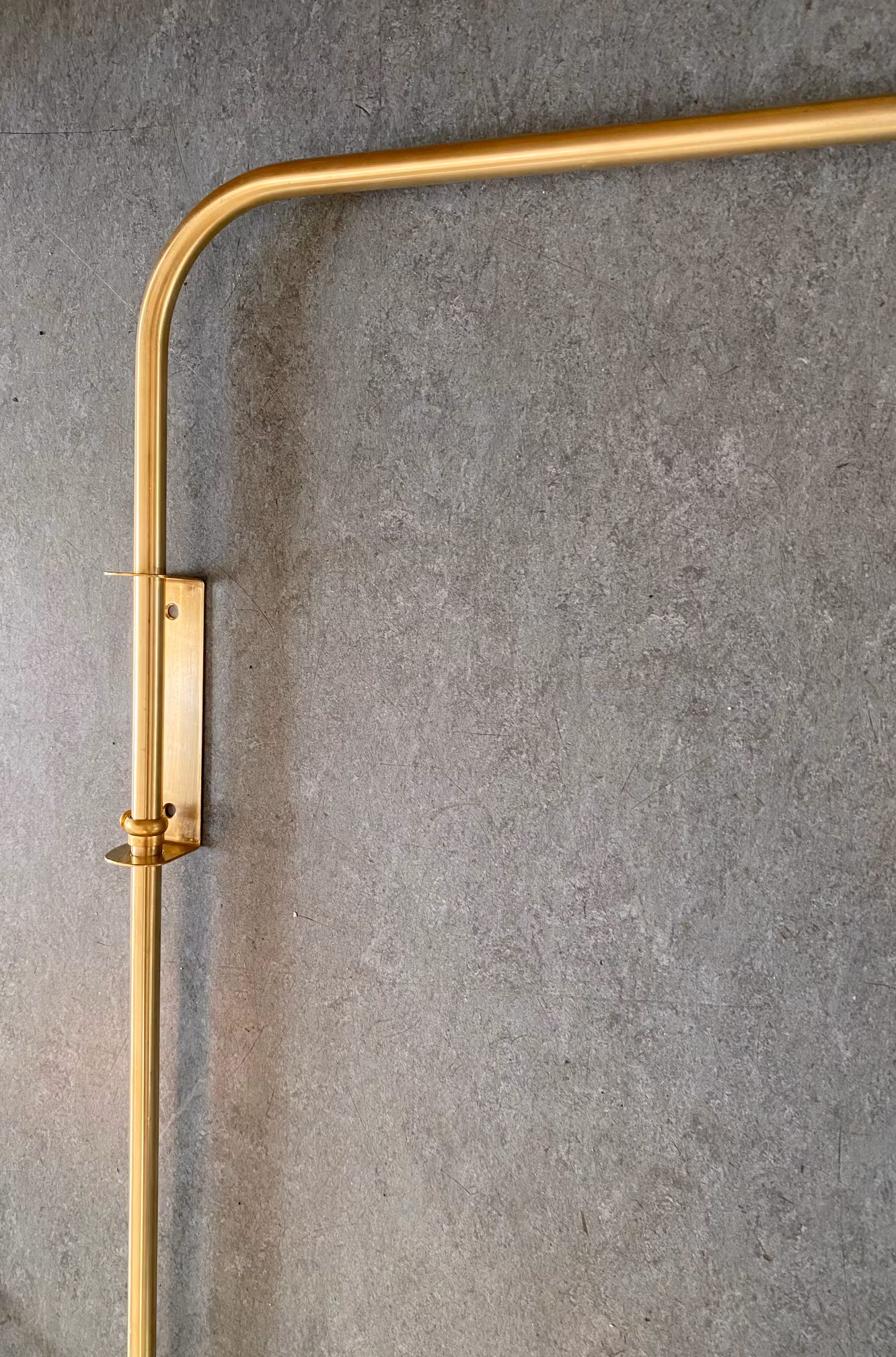 Vägglampa helt i obehandlad mässing. Med ringfäste för lampskärm med toppringsfäste. Slät eller tvinnad mässingsfärgad textilkabel 1,5 m. Behöver du längre så meddela detta. Lamphållare som kan vinklas åt alla håll, för lampa E27.